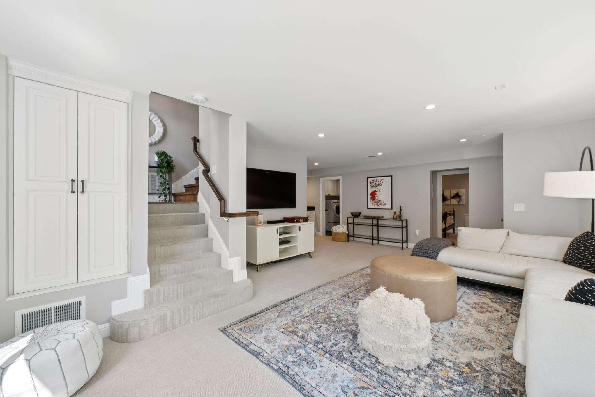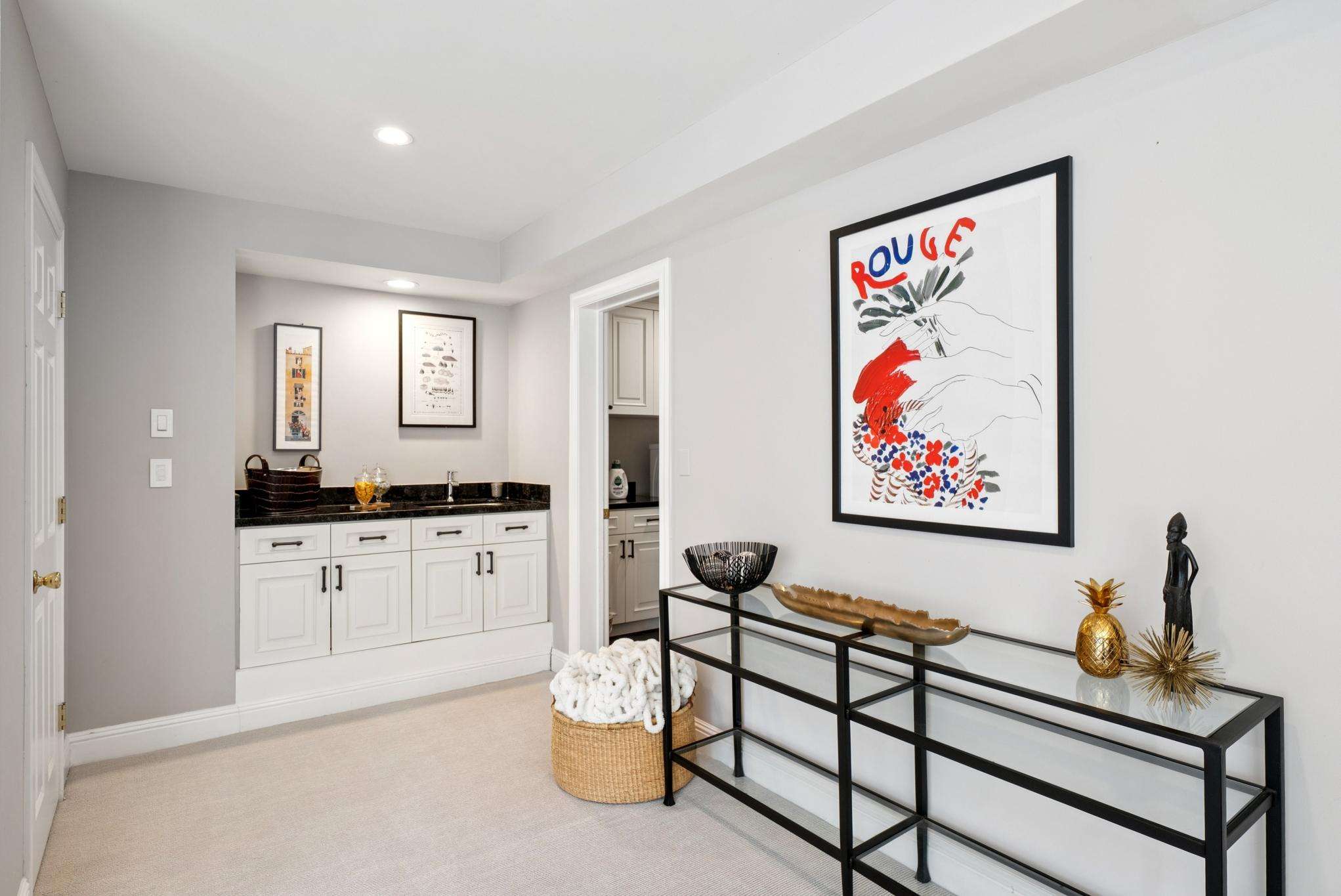 On the lower level, a sizable media room pairs with an eat...or drink...in the wine cellar, a luxurious steam shower, and laundry. Additional features include a vast wine cellar with built-in seating, a cozy carpeted family room with a wet bar, and an office away from the distractions of home, equipped with its entry/exit and a large closet with custom shelving.